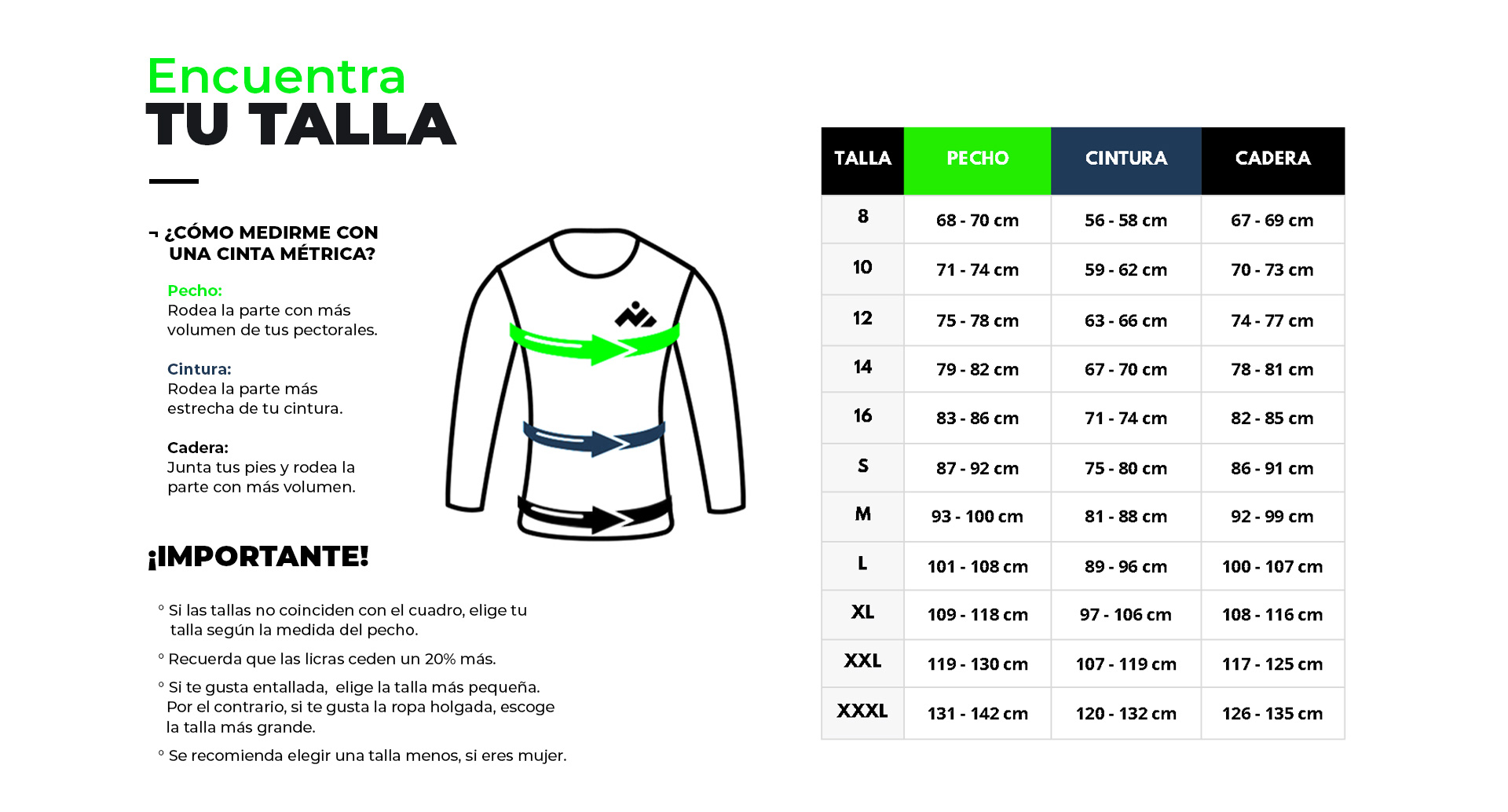 Guía de tallas de Camisetas